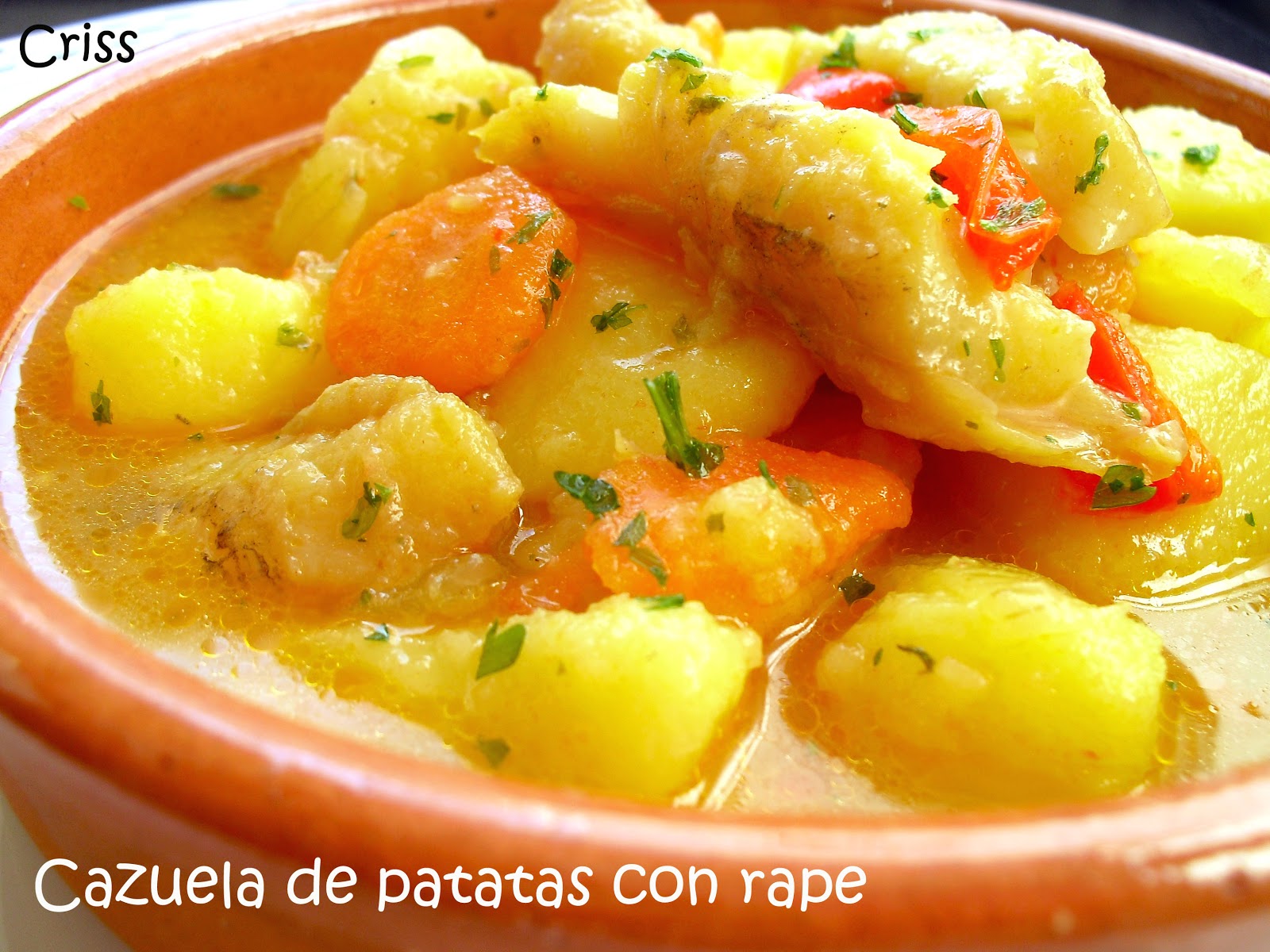 Qué rico, Criss y que apetecible mojar pan en esa salsita. El rape es uno de los pescados que más me gusta, lo pondré el próximo domingo, para siempre es fiesta cuando lo como.