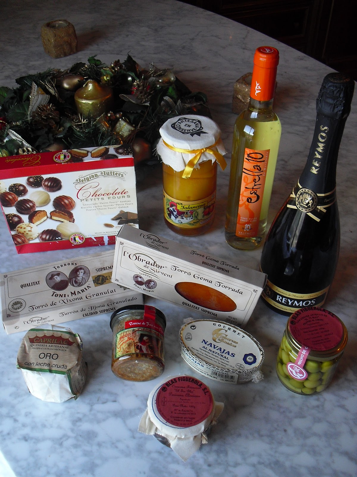 Os pongo una foto de la cesta que me regaló mi jefe en Navidad, con productos gourmet! Buenísimo todo!!