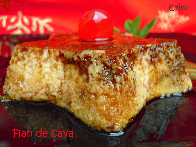 que flan más rico y para aprovechar el cava que quedo en alguna botella abierta es genial la idea.